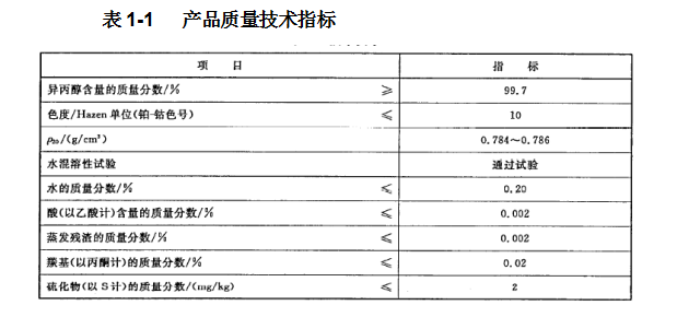 裝置產(chǎn)品質(zhì)量符合《國家標準GB/T 7814-2008 工業(yè)用異丙醇》的規(guī)定。