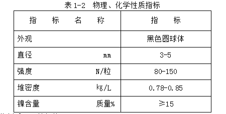 催化劑的物理、化學性質(zhì)指標列于表1-2中。