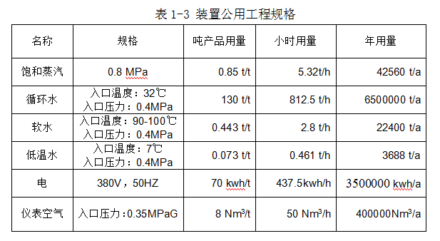 丙酮加氫生產(chǎn)異丙醇原材料及公用工程消耗定額。