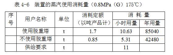 1.脫重塔不投用情況下,每噸異丙醇產(chǎn)品消耗蒸汽≤0.85噸。