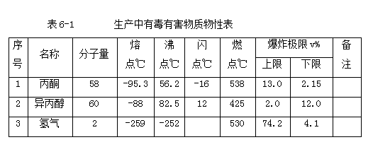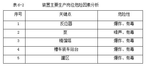生產(chǎn)過程中裝置有毒有害物質(zhì)物性。詳見表6-1。
