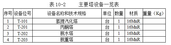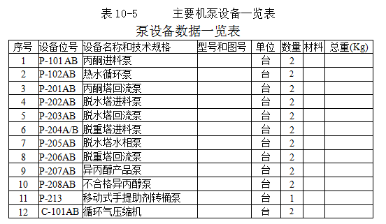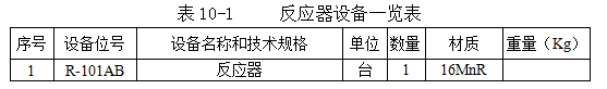 工藝設(shè)備見表10-1、10-2、10-3、10-4、10-5、10-6。