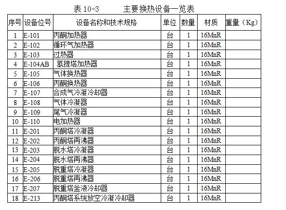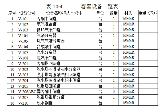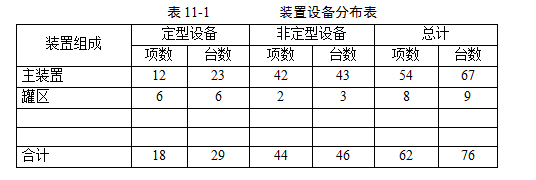 本裝置共有工藝設(shè)備76臺,其中定型設(shè)備28臺,非定型設(shè)備48臺,詳見表11-1。