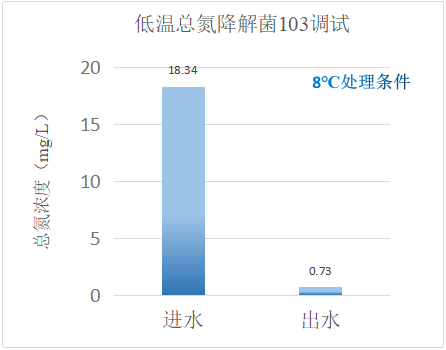 通過技術人員現場投加低溫總氮降解菌103,再配合現場生化系統(tǒng)運行條件控制、優(yōu)化,達到如下效果: