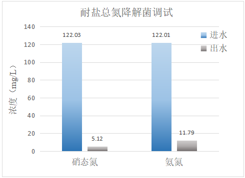 糧果廢水鹽度2%,30℃下經(jīng)過(guò)我司耐鹽總氮降解菌的生物調(diào)試后,硝態(tài)氮的去除率超過(guò)95%、氨氮的去除率超過(guò)90%。