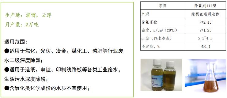 長隆科技針對現(xiàn)場主要研發(fā)了兩類除氟藥劑除氟劑II型和除氟劑III型。