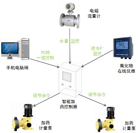 (1)現(xiàn)場新配置智能加藥控制器作為除氟劑加藥控制,不再由中控室控制。