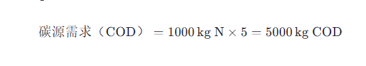 假設一個污水處理系統(tǒng)需要去除1000kg的總氮(以硝酸鹽氮計),并且采用的C/N比為5:1,則需要的碳源(以COD計)為:
